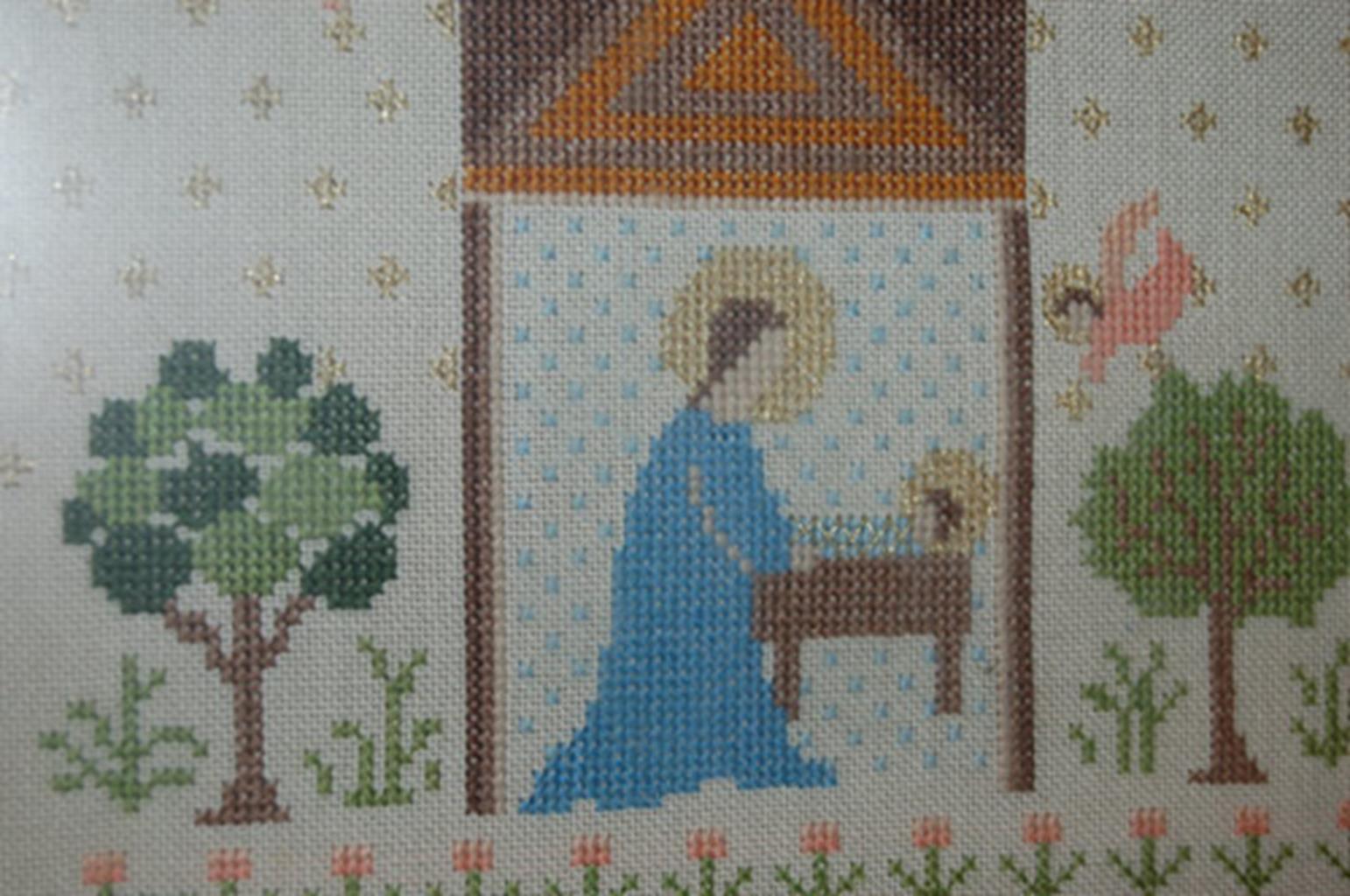 Goed Gevonden - Jezus Geboorte Schilderij Geborduurd Met Engeltjes, Maria En Kind