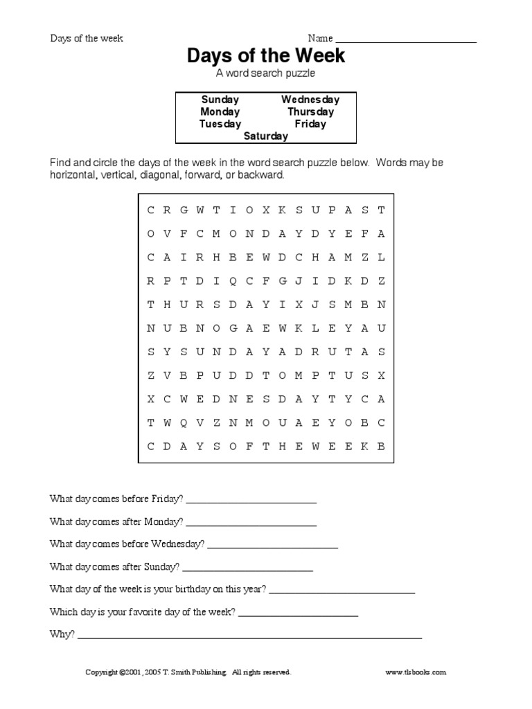 Coloring Pages Free Printable Word Search Puzzlesy Sheets For Preschoolers Days Of The Week Crossword Online Daily Crafts 65 Remarkable Free Printable Activity Sheets Awarofloves